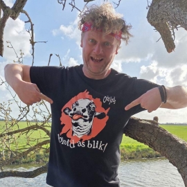 Moindert is de ouwste broer. Zou je niet zegge, hè? Nô, nô, wat ken die ramme op die ketels; zo wild as een stier met een koe over ’t sloôtje. Maar Moindert is ok hil gevoelig. Samen met Gertje zingt ie ‘Vader studdert’. Zo verlegen mooi!